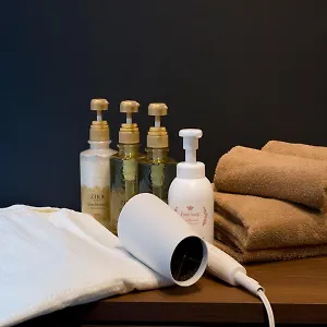 The rooms have private bathrooms with a bidet, a separate toilet, and a bath. Guests can also use a bidet and a tub, along with such amenities as hair dryers and guest toiletries.