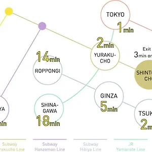 Hotel Vintage Tokyo is around a 5-minute walk from Shintomicho tube station, providing easy access to all the Tokyo's attractions.